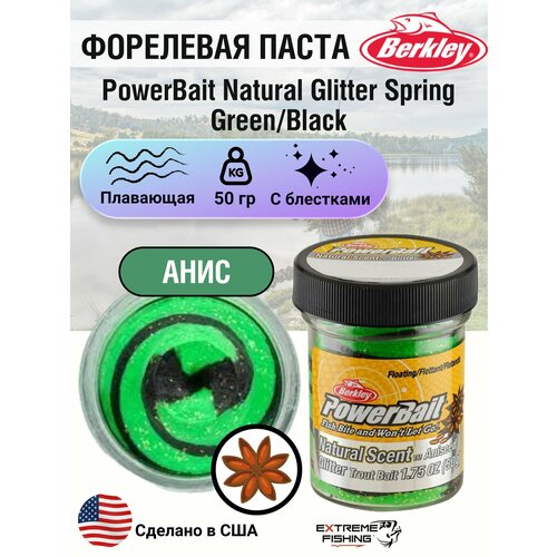 Паста форелевая анис зелено черная Berkley PowerBait Natural Glitter Spring Green/Black