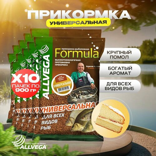 Прикормка для рыбалки ALLVEGA Formula универсальная 10 пачек по 0.9 кг
