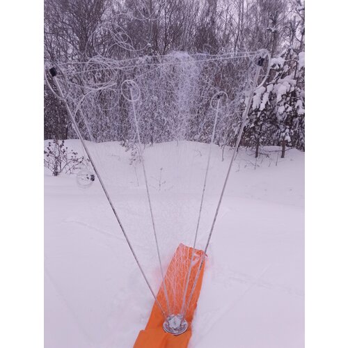 Хапуга с косынками (рыболовный зонт, хлопушка, паук). Рыболовная функциональная снасть, которая представляет собой сетчатый каркас в виде паутины. Каркас металлический. Это изделие рыбаки опускают в воду , в зимнее время в лунку. Рыба, проплывая по водному потоку, попадает в хапугу и выбраться уже не может (принцип сетки). Через некоторое время Хапугу резко достают из воды. Использовать Хапугу можно в любой сезон. Зимой ее погружают в пробуренную ледобуром лунку диаметром от 150мм. Конструкция данного изделия состоит из четырех металлических прутьев (лучей) диаметром 6мм. Лучи крепятся к основанию снасти с помощью пружин из сталистой проволоки. Быстрое раскрытие хапуги под водой обеспечивают усиленные пружины. Основание хапуги состоит из двух металлических пластин . Общий вес изделия 1,8 кг. Хапуга складывается по принципу зонта, что обеспечивает комфортную транспортировку и удобство в использовании. Хапугу можно использовать в стоячей воде, а также на течении. Эффективно использовать Хапугу (Хлопушку) там, где рыба активно двигается, а не оседает на дне. Рыболовная снасть под названием хапуга либо хлопушка - это активная снасть, которая состоит из лески, крыльев и четырех пружин. Способ ловли рыбы достаточно прост. Нужно аккуратно расположить снасти и устроиться неподалеку в ожидании, когда в нее попадет рыба и ударится в боковое крыло. Тогда быстро, рывком следует поднять ее наверх. Механизм устроен так, что рыба либо запутается в крыле, либо будет поймана сложившимся подъемником. Такой способ рыбной ловли применяется круглый год. Хапуга – это снасть для ловли речной рыбы, которая не впадает в спячку и движется в водоеме. К тому же рыбачить можно круглосуточно. Для ночной рыбалки используют дополнительную подсветку. Данная модель хапуги быстро открывается при любом течении за счет мощных пружин в отличии от хапуг с тросовым устройством. Хапуга имеет компактные размеры в сложенном состоянии, что делает ее транспортировку достаточно легкой.
