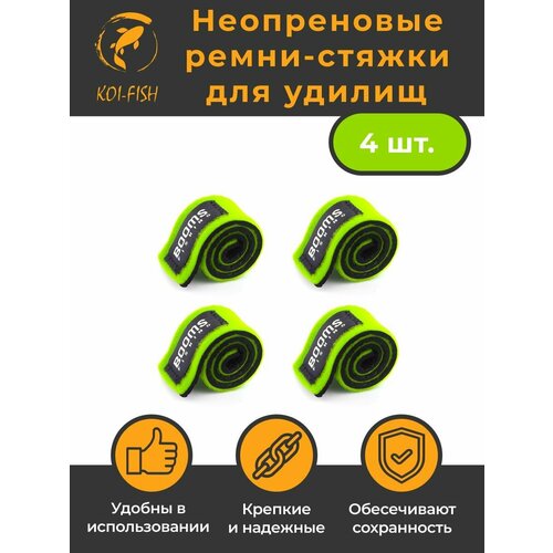 Ремешок фиксатор для удилищ на липучке RS3, 4шт, зеленый. Лента стяжка нейлоновая для удочки. BoomsFishing