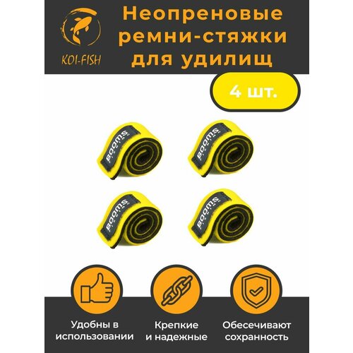 Ремешок фиксатор для удилищ на липучке RS3, 4шт, желтый. Лента стяжка нейлоновая для удочки. BoomsFishing
