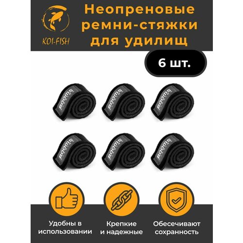 Ремешок фиксатор для удилищ на липучке RS3, 6шт, чёрный. Лента стяжка нейлоновая для удочки. BoomsFishing