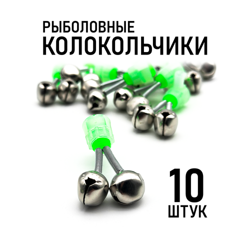 Колокольчики для рыбалки с закруткой, звонкие, зеленые, набор 10 штук