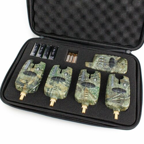 Сигнализатор поклевки звуковой с индикаторами - это идеальное решение для тех, кто хочет быть всегда в курсе событий на рыбалке. В комплект входит 5 единиц: 4 сигнализатора и пейджер.