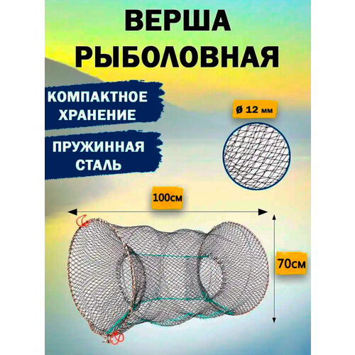 Верша рыболовная (в народе - мордушка / морда) - это давно известное орудие ловли рыб. Ещё наши деды и прадеды пользовались самодельными вершами для быстрого и самое главное продуктивного улова. Раскладывается верша очень быстро. Надо снять защёлки и освободить пружинный каркас, который мгновенно раскрывается и сильно натягивает сетку.Сложить вершу также несложно. Надо поставить ее на землю одним из витков каркаса, сдавить и плотно защелкнуть крючком. Верша рыболовная проста в конструкции и применении, удобна в перевозке и установке. Наиболее эффективные места для установки ловушки для рыбы - это густые водные заросли, подмытые берега, узкие места речек и ручьев и проходы между валунами. Приманка кладется в самый центр. Внутри верши расположен вход, который выглядит как воронка. Рыба проходит по нему и оказывается в ловушке, а выбраться назад у нее уже не получается. Раколовка 2 входа . Верша рыболовная , складывается гармошкой книжкой . Ловушка из высококачественной металлической нержавеющий стали . Нейлоновая сеть дает надежность и долговечность . Кормушка не впитывает запахи улова , легко моется . Транспортировка минимально легка , не занимающие много места.