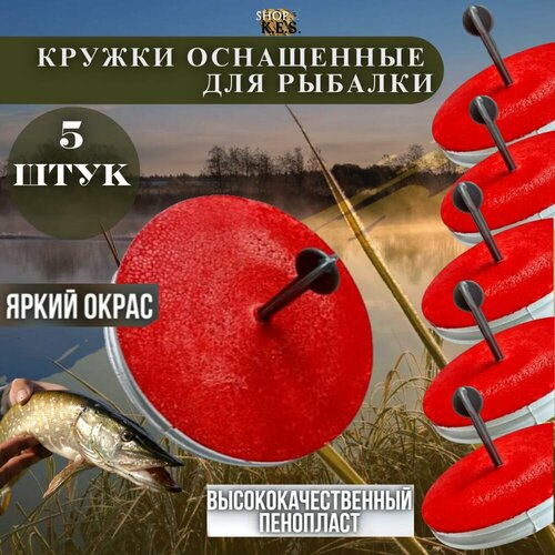 Кружки с мачтой оснащенные комплект из 5шт, жерлицы летние для рыбалки на щуку - это распространенный способ для ловли на хищника. Жерлицы летние оснащённые: длина лески 10 метров; грузик скользящий - оливка 6г; поводок металлический 21 см; крючок-двойник. Эта снасть поможет вам выловить достойный трофей. Кружок из надёжного жесткого пенопласта, диаметр - 160мм. Такая площадь делает его устойчивым на волнах. Стержень, высотой -21 см, сделан из полистирола темно серого цвета. Вы не прозеваете свою поклёвку. Качественная, примитивная и не дорогая модель.