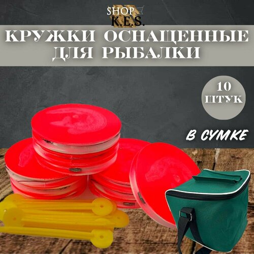 Кружки рыболовные оснащенные Щука в сумке 10шт / Набор летних жерлиц на щуку / Кружок для рыбалки на хищника