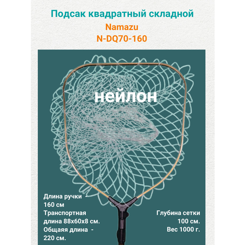 Подсак Namazu складной телескопический 160см, квадратный обод 70см, нейлон
