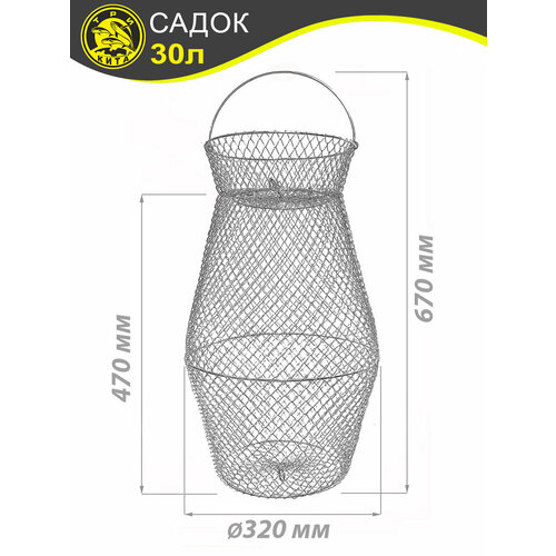 Садок рыболовный является неотъемлемой частью рыболовного снаряжения для хранения улова. Пойманную рыбу живой кладут в садок и на время рыбалки опускают его на глубину 1-2 метра. Металлический рыболовный садок, в отличие от своих синтетических конкурентов, отличается отменной прочностью и долговечностью. Он мгновенно высыхает и сохраняет форму. Садок может быть использован в любом водоеме. Он состоит из металлической нержавеющей сетки и прочных продольных колец. При транспортировке садок складывается и практически не занимает места в рюкзаке, удобен для хранения. Материал не поддается коррозии и прост в очистке, с него легко смываются загрязнения, и он не впитывает запах рыбы. Ручка обеспечивает удобство при переноске. Ячейка 15,5 см позволяет удерживать рыбу любых размеров.
