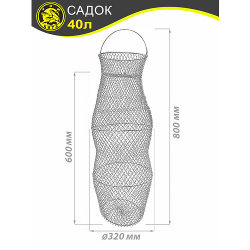 Садок рыболовный является неотъемлемой частью рыболовного снаряжения для хранения улова. Пойманную рыбу живой кладут в садок и на время рыбалки опускают его на глубину 1-2 метра. Металлический рыболовный садок, в отличие от своих синтетических конкурентов, отличается отменной прочностью и долговечностью. Он мгновенно высыхает и сохраняет форму. Садок может быть использован в любом водоеме. Он состоит из металлической нержавеющей сетки и прочных продольных колец. При транспортировке садок складывается и практически не занимает места в рюкзаке, удобен для хранения. Материал не поддается коррозии и прост в очистке, с него легко смываются загрязнения, и он не впитывает запах рыбы. Ручка обеспечивает удобство при переноске. Ячейка 15,5 см позволяет удерживать рыбу любых размеров.