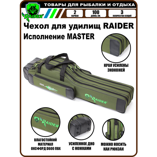 Чехол для удилищ RAIDER MASTER 100 см, 3 секции, 2 кармана.