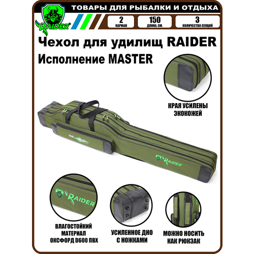 Чехол для удилищ RAIDER MASTER 150 см, 3 секции, 2 кармана.
