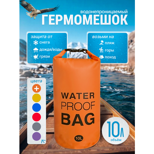 Гермомешок водонепроницаемый, водоотталкивающий оранжевый 10 литров, Water Proof Bag