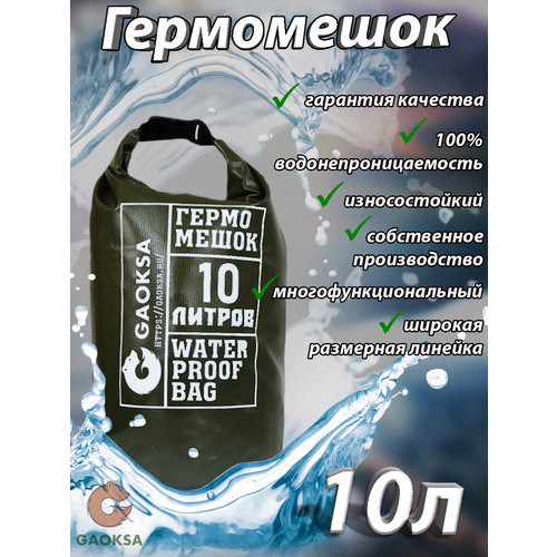 Водонепроницаемый туристический гермомешок пвх GAOKSA, прочная гермосумка 10 л, хаки драйбег, охота и рыбалка