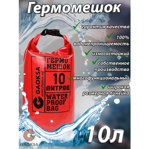 Водонепроницаемый туристический гермомешок пвх GAOKSA, прочная гермосумка 10 л, красный драйбег, охота и рыбалка