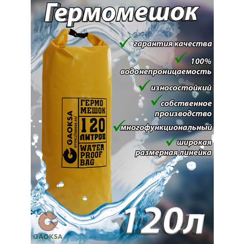 Водонепроницаемый туристический гермомешок пвх GAOKSA, прочная гермосумка 120 л, желтый драйбег, охота и рыбалка