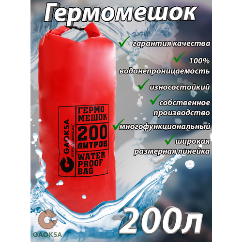 Водонепроницаемый туристический гермомешок пвх GAOKSA, прочная гермосумка 200 л, красный драйбег, охота и рыбалка
