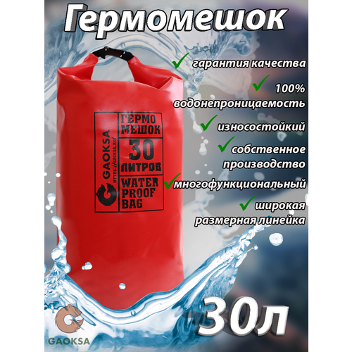 Водонепроницаемый туристический гермомешок пвх GAOKSA, прочная гермосумка 30 л, красный драйбег, охота и рыбалка