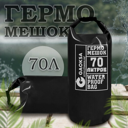 Водонепроницаемый туристический гермомешок пвх GAOKSA, прочная гермосумка 70 л, черный драйбег, охота и рыбалка