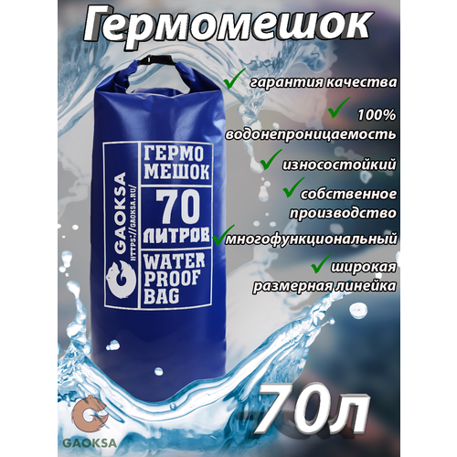 Водонепроницаемый туристический гермомешок пвх GAOKSA, прочная гермосумка 70 л, синий драйбег, охота и рыбалка