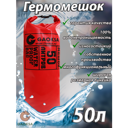 Водонепроницаемый туристический гермомешок пвх GAOKSA, прочная гермосумка 50 л, красный драйбег, охота и рыбалка