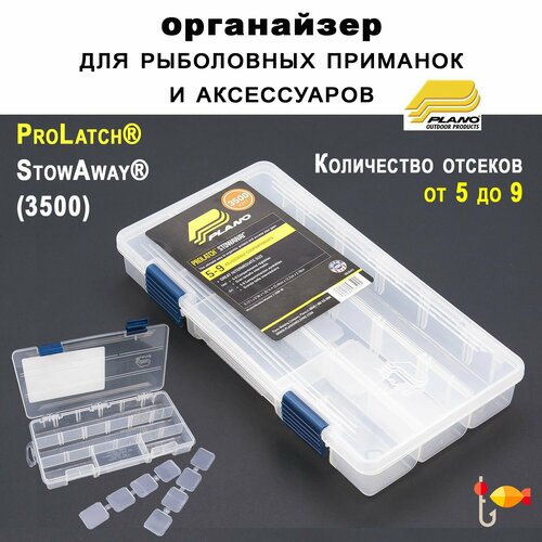Органайзер, коробка для рыболовных приманок Plano ProLatch StowAway 3500, 5-9 отсеков, прозрачный