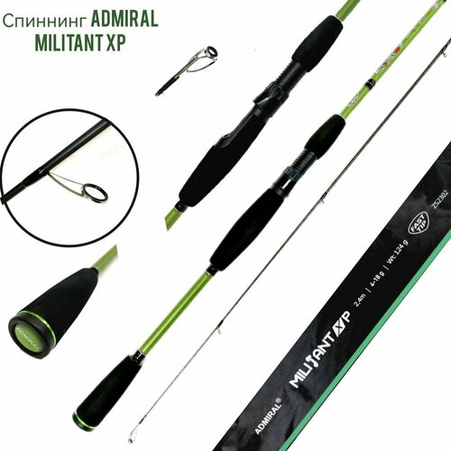 Обновленная серия спиннингов Admiral MILITANT XP, выпущенная вместо серии TOP, с учётом замечаний и пожеланий рыбаков. Новый бланк изготовлен из карбона IMF, который при тех же характеристиках прочности, гибкости и жёсткости что и карбон HME, но легче на 25% что делает его идеальным материалом для создания удобного и эффективного спиннинга. Вершинка спиннинга пустотелая Tubular tip. Оснащен семью противозахлестными кольцами со вставками SIC из карбида кремния. На бланке предусмотрена петелька для крепления приманки. MILITANT XP - это универсальный спиннинг, который подходит для выполнения практически любых задач при ловле всеми видами приманок, от самых лёгких, до тяжёлых весом 100гр. Строй спиннинга Fast, однако при вываживании работает по всей длине и превосходно вяжет рыбу, предотвращая досадные сходы. Рукоять спиннинга разнесенная выполнена из неопрена EVA, что придает спиннингу современный вид, сохраняя классические традиции. Теплый катушкодержатель, обеспечивает максимальный комфорт при использовании в холодную погоду. Спиннинг превосходно сбалансирован и предназначен для ловли всех видов хищной рыбы.