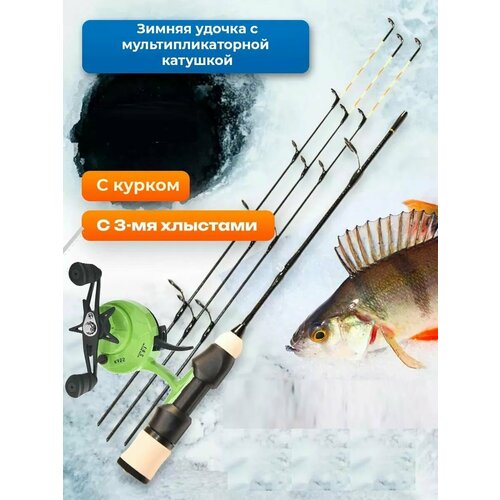 Зимняя удочка с катушкой с 3 сменными хлыстами разной жёсткости и мультипликаторной катушкой Lizard с фрикционом . Длина - 50см. Конструктивно подходит для зимнего блеснения и так же легко оснащается, как зимний фидер. Хорошо показала себя на морозах. Удилище для зимней рыбалки сделано из углекомпозита (карбон с добавками связующих 50*50) . Рукоять сделана из неопрена - это тёплый материал, который устойчив к низким температурам, приятен в руке и не скользит. Катушкодержатель контроктурного типа, на бланке имеется кольцо для зацепа приманки. Кольца крупные, классические со вставками SIC, что позволяет легко удалять намерзание. Спиннинг зимний штекерный имеет надёжное сочленение, комплектуется тремя хлыстами разной жесткости, что позволяет использовать разные весовые группы приманок. Отлично подойдет для ловли хищников, прудовых и карповых рыб, таких как щука, форель, окунь. Особенность блеснилки в том, что она многофункциональна, ее можно использовать и для ловли мирной рыбы. Для этого не нужно менять катушку, лишь подобрать вершинку удилища для условия ловли и поставить оснастку под ловлю мирной рыбы, таких как лещ, плотва, судак и др. С каждым годом всё больше набирает популярность такой вид ловли как «Зимний фидер». Для зимнего фидера выпускаются специальные фидерные кормушки из прозрачного пластика с очень маленьким весом. Эта удочка зимняя полностью отвечает требованиям такого вида ловли, а запас прочности позволяет добыть солидный трофей. С ней легко и просто обращаться, удочка очень лёгкая и не требует особенных навыков. Можно использовать как бортовую удочку. Отличный подарок мужчине, парню, мужу на Новый год, 23 февраля!
