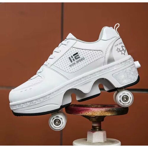1. Креативный дизайн: сочетание коньков и спортивной обуви! Подошва состоит из скрытых колес и съемных тормозных головок.
