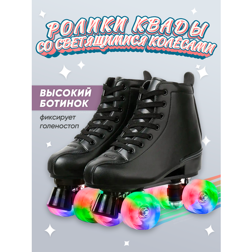 Квады Роликовые коньки Banwei Black, светящиеся колёса, фигурные