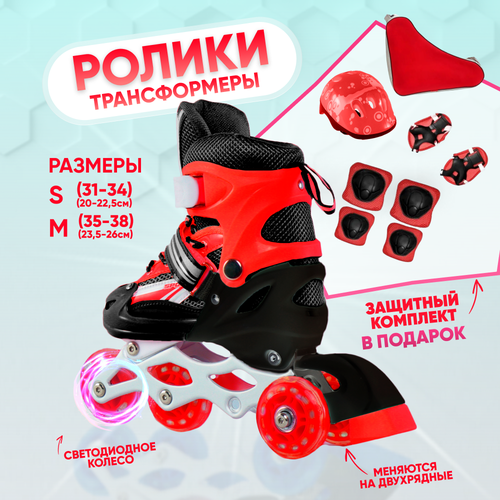 Набор: Ролики детские + комплект защиты, красные размер 31-34