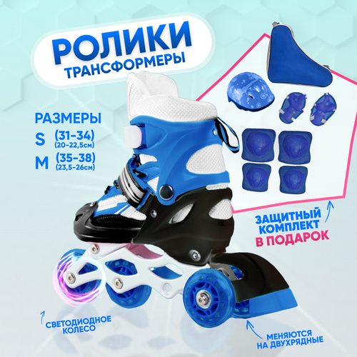 Для удобства хранения и транспортировки роликов предусмотрена сумка-переноска. В комплект также входит шлем, который обеспечивает дополнительную защиту головы ребенка во время катания, снижая риск травм.
