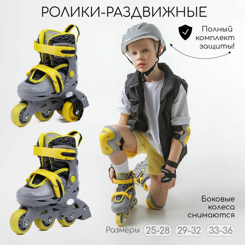 Ролики Amarobaby Glide раздвижные со светящимися колесами и защитой, черный/серый/желтый, размер 29-32
