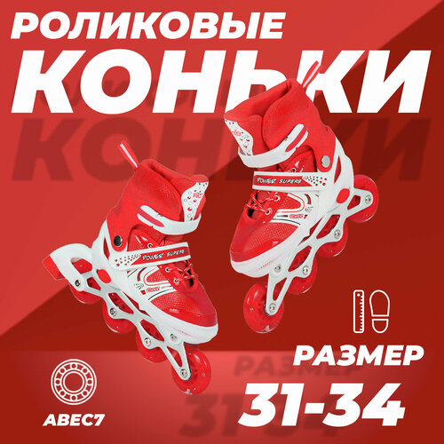 Роликовые коньки раздвижные 31-34, колеса полиуретан, ABEC7, красные