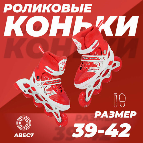 Роликовые коньки раздвижные 39-42, колеса полиуретан, ABEC7, красные