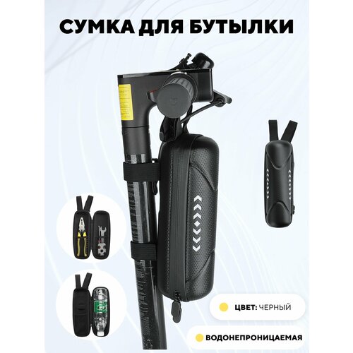 Закрепляется на руль с помощью 4 надёжных хомутов-липучек. Идеально подходит для хранения бутылки воды, инструментов, зарядных устройств, ключей и других нужных мелочей. Можно использовать как бардачок для электросамоката, велосипеда или даже самодельных проектов.