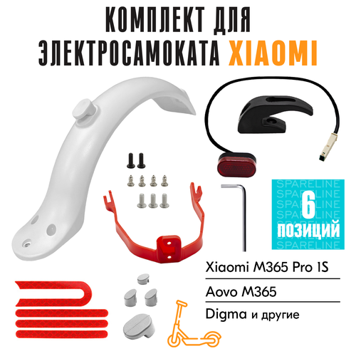 Крыло заднее в сборе для электросамоката Xiaomi M365 / Pro / Prо2 / 1S / Aovo M365Pro / Aovo M1, стоп-сигнал и поддержка крыла, белый