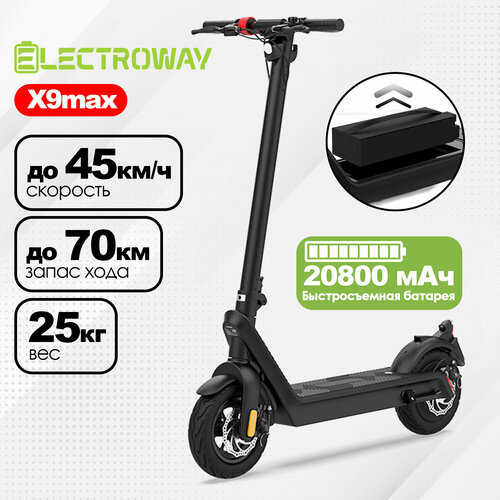 Электросамокат с быстросъемной батареей ELECTROWAY X9max. Запас хода до 70 км / скорость до 45 км/ч. Электрический самокат городской складной для взрослых