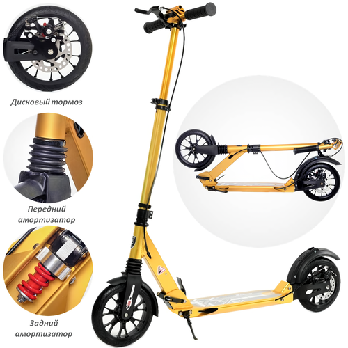 Городской самокат Scooter Disk Brake с ручным дисковым тормозом Золотой