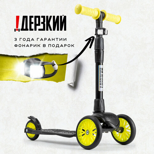 Самокат детский трехколесный 0-5 лет !Дерзкий BABY Спорт бесшумное шасси Super CHASSIS 3-колесный, желтый