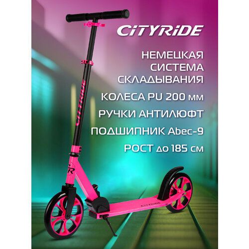 Самокат двухколесный CITYRIDE, складной, для детей, для подростков, колеса PU 200/200, 2х колесный самокат, подножка, CR-S2-01NPK