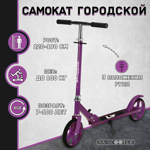 Самокат двухколесный городской SX Scooter, складной, 200 мм, фиолетовый