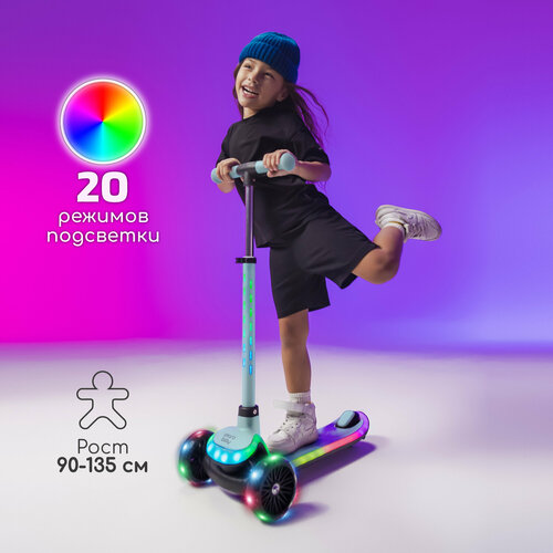 Светящийся трехколесный самокат AmaroBaby Blaze превратит обычную детскую прогулку в настоящий спектр позитивных эмоций! Детский трёхколёсный самокат подходит в качестве первого самоката для ребёнка. Кикборд изготовлен из качественных материалов и не имеет запаха. Выдерживает максимальную нагрузку 50 кг. Дека и рулевая стойка имеют встроенную подсветку из 20 режимов! Питание от трех батареек АА 1,5V (в комплект не входят). Переключаются режимы с помощью кнопки управления, расположенной на руле. Рулевая стойка наклоняется в нужную ребёнку сторону, что даёт возможность уверенно держаться в поворотах, сохранять равновесие. Высота руля регулируется по высоте от 64 до 80 см. Бесшумные полиуретановые колеса светятся во время езды. Диаметр передних колёс составляет 12 см, заднего 8 см. Торможение осуществляется с помощью ножного тормоза, который расположен на заднем колесе. Ребёнку будет удобно стоять на самокате благодаря комфортной длине деки 41 см, и ширине 13,5 см. На деке самоката предусмотрен специальный рельеф, чтобы ножка ребёнка не скользила. Подшипники ABEC-7 обеспечивает плавный ход самокату. Самокат отлично подойдёт в качестве подарка на День Рождения, Новый год, 8 марта. Порадуйте своего ребёнка стильным светящимся самокатом!
