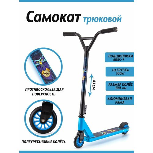 Самокат трюковой, с подшипником abec 7, пластиковые диски, синий