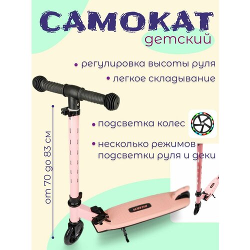 Самокат для детей светящийся Розовый