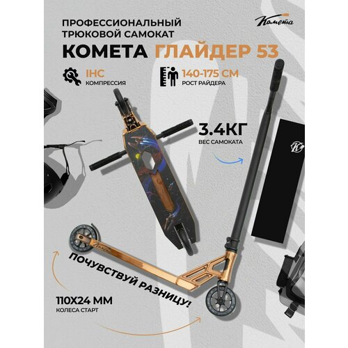 Трюковой самокат Комета Глайдер 51 – это не просто транспорт, а инструмент для самовыражения и спортивного развития!