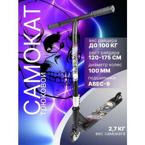 Самокат трюковой с алюминиевыми колесами 100 мм черный монстр