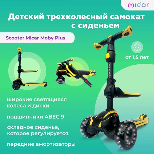 Детский трехколесный самокат с сиденьем Micar Moby Plus со светящимися колесами