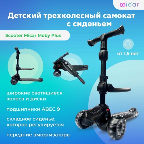 Детский трехколесный самокат с сиденьем Micar Moby Plus со светящимися колесами