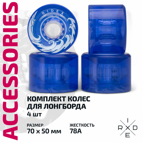 Комплект колес для лонгборда 70x50 мм, 78A от Ridex. Цвет: синий.